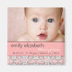 Stellen Sie Ihr kleines süßes Mädchen mit diesem hübschen Foto-Magneten in einem eleganten rosa-weißen Damast-Design vor. Es ist einfach mit Ihrem Foto, Ihrem Namen und Ihren Geburtsdetails angepasst und macht eine wunderbare einmalige Ankündigung, mit Ihren Lieben zu teilen.