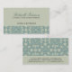 Ein barockes Damastmuster gibt dieser Geschäftskarte sein visuelles Interesse. Subtile Schatten des weisen Grüns und des Aqua arbeiten zusammen, um eine Karte herzustellen, die für Innenraum, Mode, Schmuck- oder Textildesigner, Großhändler oder Einzelhändler arbeitet. Verfügbar in den abwechselnden Farben mit zusammenpassenden Produkten.