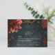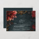 Ein opulentes gotisches Hochzeitsdesign mit dunklen botanischen Schnörkeln, reich bordeauxfarbenen Blumen und antiken goldenen barocken Rahmen. Set vor einem strukturierten Hintergrund aus Kohle, diese launische Komposition ist ideal für romantische Halloween-Hochzeiten, alternative Zeremonien oder dramatische Vintage Angelegenheiten. Vollständig anpassbar für Namen, Datum und Ort - erstellt für Paare mit einem Flair für das Mysteriöse und das Prachtvolle.