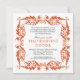 Eine elegante Art, Ihre Familie und Freunde zu Ihrer nächsten Ansammlung einzuladen, sei es ein Dinner oder Cocktail-Party, eine Verlobungsfeier oder ein besonderes Urlaubserlebnis wie Ihr Erntedank-Dinner. Ein barocker Rahmen in Herbstorange hebt Ihre individuelle Party Einladung hervor. Der Rahmen wird auf der Rückseite wiederholt, wo Sie zusätzlichen Text hinzufügen oder entfernen können. Erhältlich in alternativen Farben mit passenden Produkten.