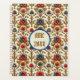 Rote und blaue Blumen mit goldenen Akzenten in einem barocken Design schaffen einen schönen und eleganten Planer. In einem blauen Kreis mit einem blassen Elfenbeinzentrum werden Ihre Initialen oder Monogramm im Jahr aufbewahrt.
