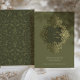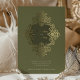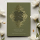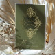 Diese exquisite Hochzeitseinladung besticht durch ein aufwändiges barockes Ornament-Design in strahlender Goldfolie vor einem üppigen olivgrünem Hintergrund. Die verzierten Details umrahmen die Namen und Veranstaltungsdetails des Paares und fügen dem ästhetischen Gesamtbild eine luxuriöse Touch hinzu. Die Rückseite setzt das opulente Motiv mit einem passenden barocken inspirierten Muster fort und macht diese Einladung perfekt für feierliche Hochzeiten, die klassische Eleganz und Grandeur einschließen. Ideal für Paare, die ein zeitloses und raffiniertes Design suchen, ist diese Karte sicher ein bleibender Eindruck.