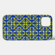 Klassische Damastmuster, die in einer Farbpalette eines Barockkünstlers dargestellt werden. Dieser Fall in Lemon Yellow und Egyptian Blue.