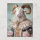 This ornate design features a majestic Mountain Goat in extravagant Baroque royal attire. The goat wears a blue and gold patterned coat and a crown, depicted as a high-mountain noble. A luxurious and unique art print for fans of fantasy and regal animal portraits.