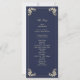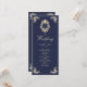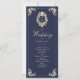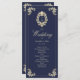 Elegantes Hochzeitsprogramm der Barockmarineküche mit einem Vintagen viktorianischen Monogramm, verzierten Rahmendetails und klassischen Schnörkeln. Dieses zweiseitige Zeremoniell-Programm eignet sich perfekt für traditionelle Hochzeiten und beinhaltet die Reihenfolge der Bestellungen und die Einzelheiten der Hochzeitsfeier. Koordiniert mit der vollen marokkanischen und goldenen Barock Hochzeitssuite für ein zeitloses, luxuriöses Aussehen.