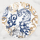 Elegant vintage vector pattern featuring flowing baroque-style floral scrolls in navy blue and gold on a clean white background, creating a classic, luxurious, and timeless ornamental design.
