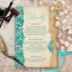 Add timeless charm to your wedding suite with this baroque turquoise floral lace wedding enclosure card. Designed with an elegant vintage lace motif and intricate scroll accents, this insert features a soft parchment-style background in muted beige with vibrant turquoise detailing — perfect for adding color and texture to your wedding stationery. Ideal for rustic, boho, western, or vintage-inspired weddings, this card is a beautiful way to share reception details, accommodations, or your wedding website. Fully customizable and perfect for fall, spring, or destination weddings, it brings romantic flair to your invitation suite.