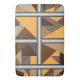 Die Badematten sind aus Stein. Barred ist ein abstraktes, von Vexenwraith entworfenes Design, das aus braunen, orangen, bräunlichen und grauen Formen hinter silbernen Gradientenleisten besteht.