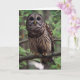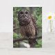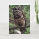 Eine schöne, erwachsene Eule, die auf einem Baumstamm steht. Foto von Brian Kraus.