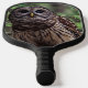 Eine schöne, erwachsene Eule, die auf einem Baumstamm steht. Foto von Brian Kraus.