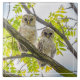 An einem hellen Frühlingstag stehen zwei verbarmte Kugeln in einem Baum und starren auf den Fotografen.