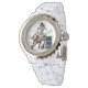 Weiße Damen Email Strassuhr