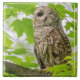 An einem hellen Frühlingstag stürzte eine Eule in einem Ahornbaum.