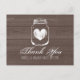 Stall Holz Korn Panel Land chic Glas Glas Glas Glas Glas Glas Glas danke Ihnen Karten. Liebe und danke! Teil des rustikalen DJ Thema Set. Niedliches Outdoor-Design mit Vintag verblassenem Herzen. Ideal für Sommerfreunde im Freien, im Juli und August. Personalisieren Sie mit dem Namen der Braut und Bräutigam plus Datum der Heirat. Anpassbare Hintergrundfarbe. Stilvoll bedrängte Skripttypografie. Schöne Kunstwerke für trendige Hochzeiten. Braune und weiße Farben.