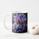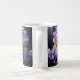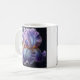 Eine wunderschöne, lila Bartjirsche bringt den Garten mit der Tasse hinein.
