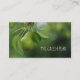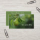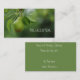 Eine schöne Birne, die auf einer Visitenkarte aus dem Baum hängt.