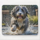 Ein glücklicher Bartentochter schafft einen Splint in einer Wasserpfütze