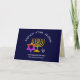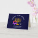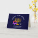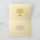 Stilvolle, moderne HANUKKAH BLESSINGS Grußkarte. Design zeigt ein goldfarbenes MENORAH mit bunten DAVID STAR und silbergrauer DREIDEL. Oben steht ein kurviger Text, in dem es heißt: BARUCH ATAH, ADONAI (Gesegnet bist du, o Gott) und unter dem Text liest HANUKKAH BLESSINGS VON UNSERER ZUHAUSE ZU IHNEN. Im Inneren gibt es eine weitere Menorah (hanukkiyah) und eine Platzhaltermeldung. ALL TEXT IST KUNDENBAR, sodass Sie mit Ihrer eigenen Auswahl an Gruß und Text personalisieren können. Die Hintergrundfarbe ist Mitternachtsblau und innen ist blassgelb. Andere Versionen sind in der HANUKKAH Kollektion von Berean Designs erhältlich.