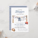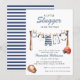A 'little slugger' is on the way! Celebrate your upcoming arrival with this adorable baseball-themed baby shower invitation. The design features cute baby clothes hanging on a clothesline strung between baseball bats, with a tiny baseball helmet and glove adding to the charm. The classic navy and white stripes on the back complement the sporty theme, creating a cohesive and memorable announcement for your special event. This invitation is perfect for parents who love baseball or are looking for a unique and fun way to celebrate their baby shower.