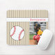 Baseball Ball Name und Foto Sports Mouse Pad. Baseballmauspad mit Baseballball auf Streifen. Fügen Sie Ihr Foto in die Vorlage ein. Personalisieren Sie das Pad mit Ihrem Namen. Der Hintergrund ist beige mit schwarzen Streifen. Es ist eine tolle Geschenkidee für Jungen oder Mädchen, die Baseball und Sport Lieben.
