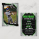 Zeigen Sie Ihre Liebe für das Spiel mit dieser stilvollen und anpassbaren Baseball Trading Card. Mit einem kühlen, modernen Design und einem eleganten Schwarz-Grün-Farbschema ist diese Karte ideal, um Ihren Lieblingsspieler zu ehren. Fügen Sie einfach Ihr eigenes Foto, Spielername, Teamname und Statistik für eine personalisierte Touch hinzu.