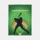 Baseball Batter Design Fleece Blanket mit der Silhouette eines Schlagzeugs vor einem Baseball Diamond Hintergrund mit individualisierbarer Personalisierung.