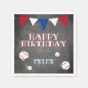 Modern Baseball Chalkboard Kindergeburtstag Party Napkin // Niedlich Baseball Geburtstagsparty Serviette für Kinder. Das Design hat Baseballs und bunte Fahnen in Rot, Weiß und Blau auf dem Chalkboard-Hintergrund. Personalisieren Sie diese Geburtstagsserviette mit einem Kindernamen. Ideal für einen Jungen, der Baseball und andere Sportarten Liebe.