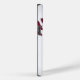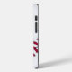 Maßgeschneidertes iPhone-Gehäuse mit roter Stickerei eines Baseballs in der oberen links Ecke und in der unteren rechten Ecke des weißen Gehäuses. Personalisieren Sie den schwarzen Text nach Ihren Wünschen.
