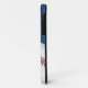 Benutzerdefinierter Baseball Fan iPhone 5 Gehäuse, mit einer Grafik von einem blauen Muster Hintergrund. Die Grafik eines Baseballs schmückt die untere rechte Ecke des Gehäuses, und auf der links Seite ist der in roter Farbe gehaltene Text personalisiert. Großartiges Telefongehäuse für Sportfans oder Baseballspieler.