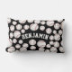 Ein lumbales Kissen des individuellen Namens, das eine oberflächliche kenntnis von Baseball der verschiedenen Größen gegen einen schwarzen Hintergrund kennzeichnet.