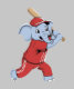 Ein lustiger und spielerischer Cartoon eines blauen Elefanten, der in einer roten Baseballuniform gekleidet ist und eine Holzfledermaus schwingt. Der Elefant hat einen fröhlichen Ausdruck, der das Design perfekt für Sportler und Tierfreunde macht.