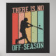 Baseball-Fans und -Spieler werden dieses bunte Baseball-Themenposter mit einem Baseballspieler aus schwarzer Silhouette und einem Text, der lautet "There Is No Off Season" (Es gibt keine außer Saison!), Liebe finden!