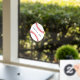 Baseball Design Window Cling mit anpassbarem Text, in verschiedenen Größen und Preispunkten.