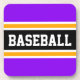 Dieses sportliche, farbenfrohe Design zeichnet sich durch einen athletischen BASEBALL-Text in einem farbigen, hervorgehobenen, breiten schwarzen Streifen mit weißen und gelben pinstripes gegen lila äußere Streifen aus. Der Text und die Farben in diesem Design können personalisiert sein.