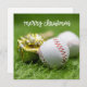 Baseball Frohe Weihnachten mit Ball auf grünem Gras .