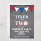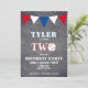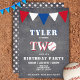 Niedliches Chalkboard Baseball Geburtstagseinladung für Jungen 2. Geburtstag // Niedliche Baseball Geburtstagskarte zum 2. Geburtstag. Das Design hat ein großes Baseball und bunte Fahnen in Rot, Weiß und Blau auf dem Chalkboard-Hintergrund. Die Rückseite hat ein Baseballmuster. Personalisieren Sie diesen Geburtstag mit einem Kindernamen und einem Foto und personalisieren Sie alle Daten auf der Einladung. Großartig als Party Einladung zum 2. Geburtstag für Jungen.