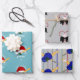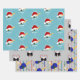 Personalisierbare Weihnachtsverpackung mit Baseball Thema - 3 Blätter. Zwei Bogen sind mit Misteloe, einem Baseballdiamanten, Fledermaus und Ball, einer mit Weihnachtsmannmütze, der andere mit Baseballmütze, der dritte Bogen mit roten und weißen Bonbons, Baseball und einem schwarzen Bogen versehen. Die ausgewählten Hintergrundfarben sind Aquablau und grau mit Farblinien, aber Sie haben die Möglichkeit, diese zu ändern. Stellen Sie sicher, dass Sie Ihren Text an der personalize-Eingabeaufforderung hinzufügen. Für Sie entworfen von HAMbyWhiteGlove
