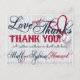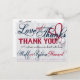 BASEBALL WEDDING DANK IHNEN POSTCARD 2b-*Dieses Dankeschön Postkarte ist nur für einen bestimmten CLIENT angepasst. Dieser ist für sie. Es werden weitere verlassend Namen zur Verfügung stehen. Über das Design: Der Hintergrund ist mit dünnen blauen und weißen vertikalen Streifen bedeckt. Decorativer Glastext oben liest: Liebe und Danke. Als Nächstes ist dekorativer roter Text, der lautet: DANKE! in Druckbuchstaben. Eine benutzerdefinierte Note in schwarzem Cursive geht vor der Signatur. Dekorative Glassignatur mit dem Namen Braut und Bräutigam. Eine kleine waagerechte Grenze von winzigen Baseballs verläuft über den Grund. Die Rückseite der Postkarte hat auch Verzierungen. Die Liebe und Dank Glastext, die Paare nennen Glastext und die senkrechte Baseballteiler. Dieses Design ist in blau und auch in rot verfügbar. Vergessen Sie nicht, die Notizen vorne und hinten in Ihrem eigenen Text anzupassen. Bearbeiten Sie die Textbereiche oder löschen/löschen Sie sie für eine leere Karte.