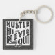 Baseball Hustle Hit nie aufhören Schlüsselanhänger. Text liest: Stress, Hit und nie aufhören, mit gekreuztem Baseball und Softball Fledermäuse Symbol.