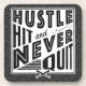Baseball Hustle Hit nie verlassen Cork Untersetzer Set. Text liest: Stress, Hit und nie aufhören, mit gekreuztem Baseball und Softball Fledermäuse Symbol.