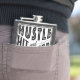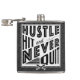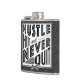 Baseball Hustle, Hit & Nie beenden Hip Flask. Text liest: Stress, Hit und nie aufhören, mit gekreuztem Baseball und Softball Fledermäuse Symbol.