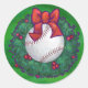Baseball in einem festlichen Holly-Kranz-Ornament, Geschenke und lustige Dekorationen zeigen unsere originale Baseballkunst, die für den Urlaub in einem grünen Heiligen Kranz mit einem hellen roten Bogen und einem strukturierten grünen Hintergrund verziert ist. Dieser Sportsaal ist perfekt für alle, die Lieben spielen und sich für den Urlaub dekorieren. Viel Spaß und sportliche Weihnachten. Es macht Spaß und Spiele im ITD Sportzentrum