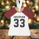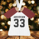 Baseball Jersey Sports Team Uniform Ornament. Dieses Baseball-Jersey-Ornament ist perfekt für alle, die Schulsport spielen oder Lieben Sport beobachten. Personalisieren Sie dieses benutzerdefinierte Design mit Ihrem eigenen Teamnamen und Jersey-Nummer.