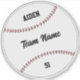Simple baseball custom vinyl sticker with the child's and team's name and the player's number .