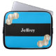 Diese Laptop-Computer Hülse wird mit Baseball auf einem hellen blauen und schwarzen gestreiften Hintergrund verziert, und ein personalisiert mit Namen oder anderem Text. Es ist einfach, Beispieltext zu ändern oder zu löschen. Eine was für wunderbare Weise, Ihren Laptop zu schützen. Wunderbares Geschenk für Baseball-Spieler, Fans oder Trainer. Alle Rechte vorbehalten © Alan 2014 u. Marcia Socolik.