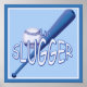Ein grafisches Baseballdesign mit dem Text "lil slugger" auf einem Poster. 2013 charmainepaulson
