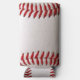 Ein Makrofoto eines nagelneuen Baseballs mit roter Naht. Perfektes Geschenk für den Baseball- oder Softball-Sportfan.