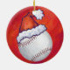 Baseball mit Weihnachtsmannmütze auf Rot Keramikornament