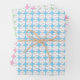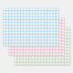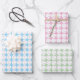 Süße Geschenkpapier-Flat Sheet-Set für Menschen und Kinder, die Ballspiele lieben, mit einem sehr einfachen Muster eines gekritzelten Baseballs. Ein Blatt ist hellblau, eines ist rosa und eines ist hellgrün.