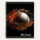 Dieses Spiralheft wird in schwarzer Farbe mit Baseballdruck gezeigt. Passen Sie dieses Element an, und ändern Sie den Beispielnamen in Ihren Namen.
